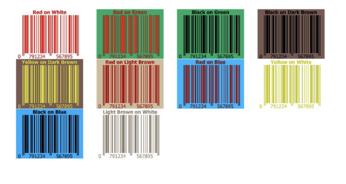 Black bars on a white background is the best combination, however some other colour combinations will also work. Some colour combinations are not suitable.